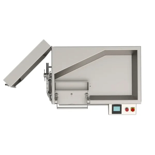 Stroj je opremljen s kolesi, kar omogoča enostavno premikanje in postavitev na različna mesta v vaši kuhinji ali proizvodnem obratu. To omogoča prilagodljivost in enostavno prilagajanje vašim delovnim potrebam.